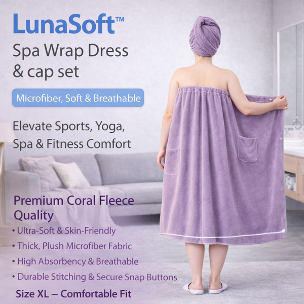LunaSoft™ Spa Wrap Dress & Cap Set